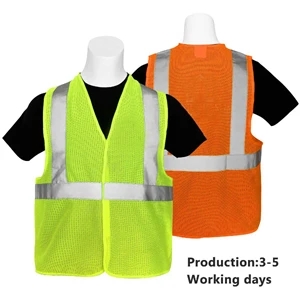 This ANSI/ISEA 107 Class 2 vest is intended for workers requiring the highest level of visibility --those who need to be visible throughout a full range of body motions. The vest is constructed out of a breathable polyester mesh fabric, featuring a 2" reflective tape pattern for optimum visibility. The safety vest is available in bold, bright colors for maximizing visibility.